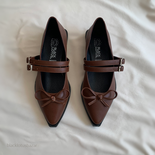 Ballerinas correas negrras con moño y ojillos