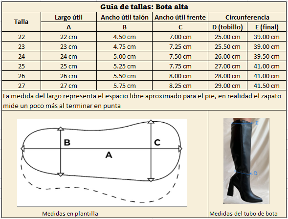 -Las botas vienen en su talla, te recomendamos pedir la que normalmente usas, si calzas de un número medio porque tu pie es ancho te aconsejamos elegir la siguiente talla. Al final de las fotos puedes encontrar las medidas de cada talla para confirmar tu numero